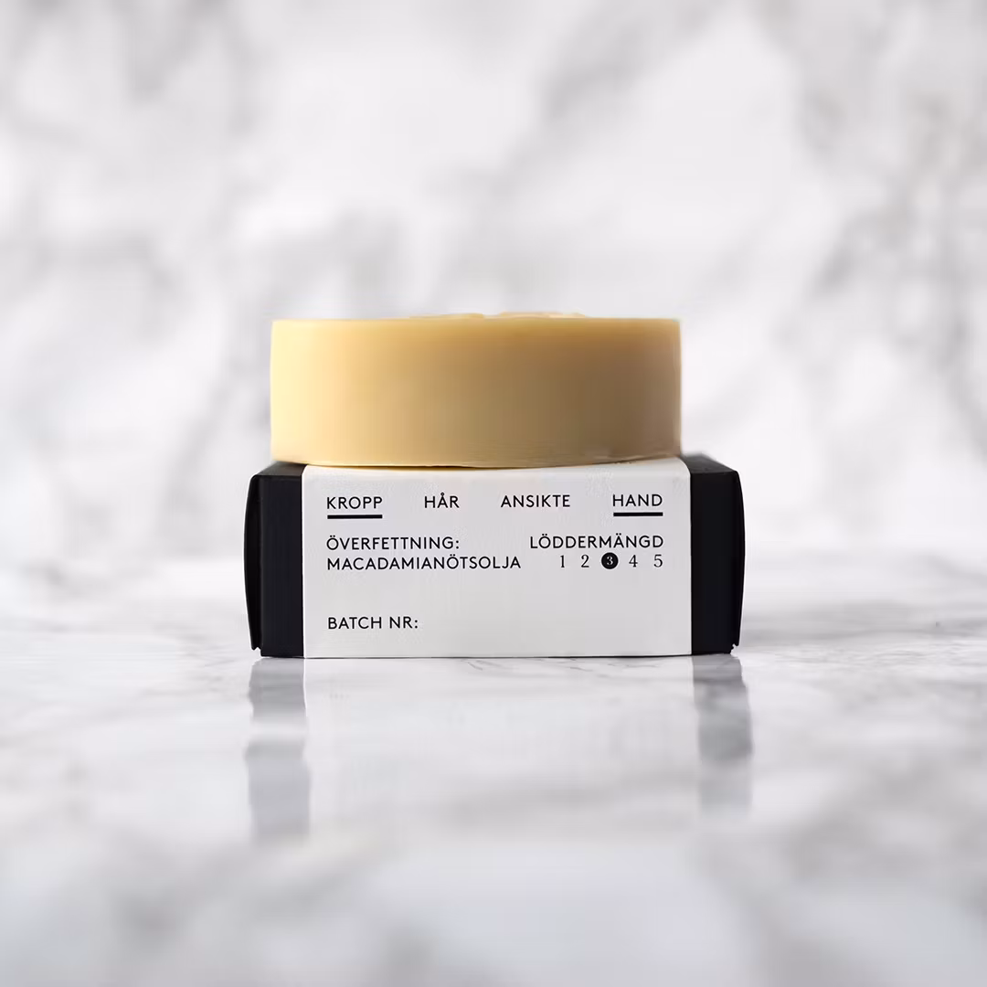 Skötselråd: Ta hand om din tvål och låt den torka upp på ett bra tvålfat mellan användningarna så håller den längre.