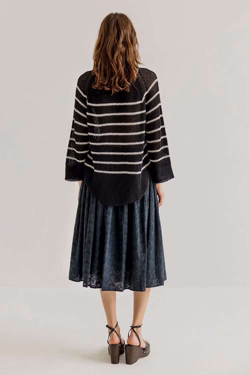 Tunn stickad tröja i ledig modell, lång ärm och rundad nedtill.