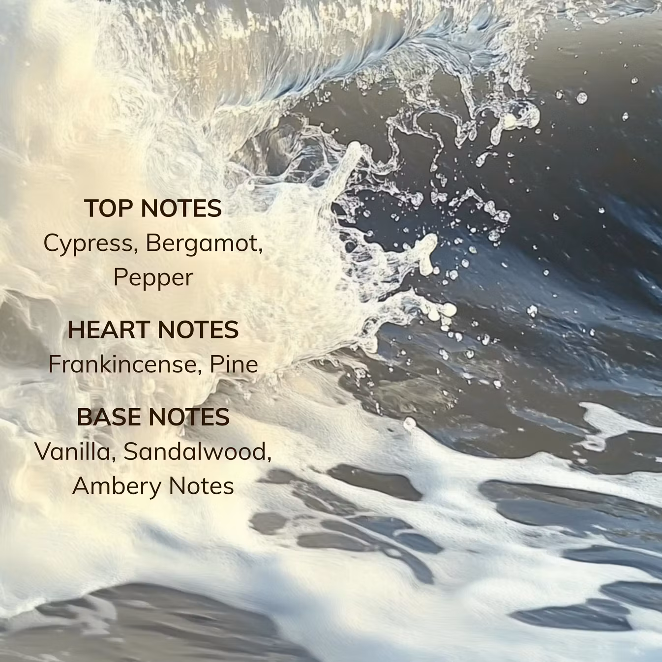 En doft av äventyr och mystik, med bas av lite träiga toner av amber och sandalwood, toppas av peppar och bergamot.