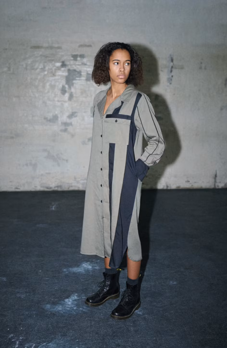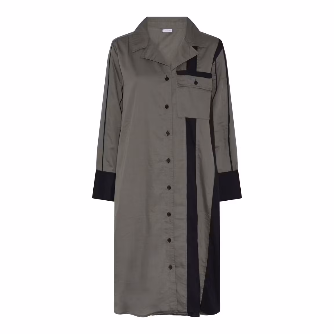 Skjortklänning med lång ärm och fickor. Armygrön med svarta detaljer. Fin också att bära uppknäppt över byxor.