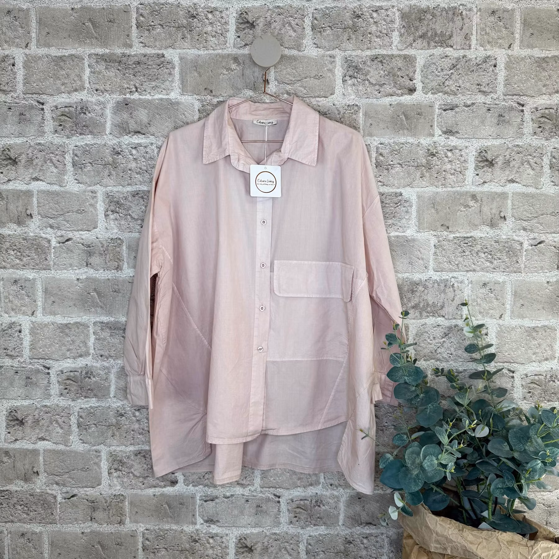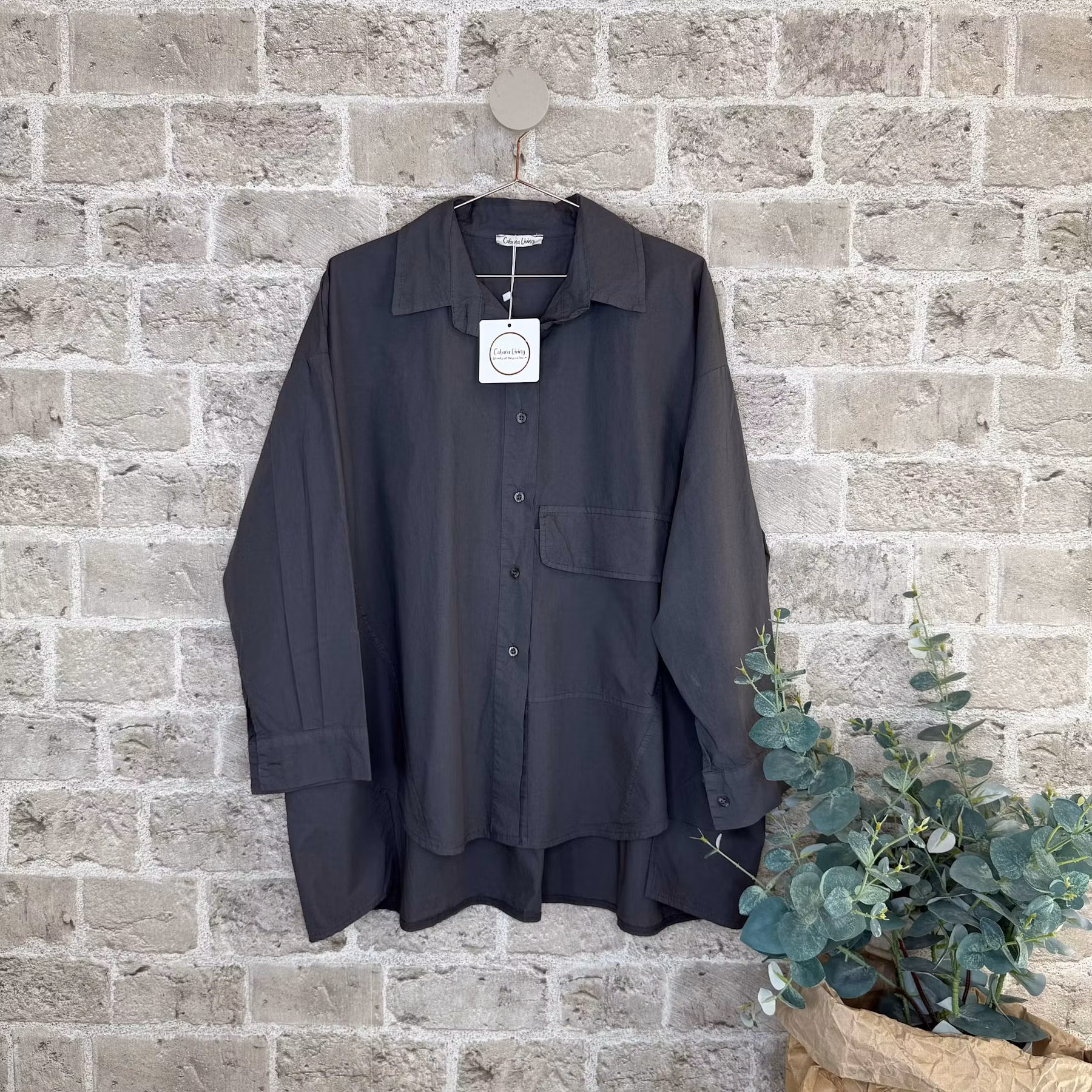 Skön storskjorta i prasslig bomullspoplin, med fina detaljer. Modellen är en rejält tilltagen oversize modell, lite längre baktill, och fungerar fint som onesize - passar alla!